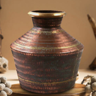 Cultural Significance and Reverence: In many cultures, the Antique Copper Kalash occupies a central place in religious ceremonies, festivals, and rites of passage. It symbolizes purity, abundance, and the eternal cycle of life, serving as a focal point for devotion and worship.